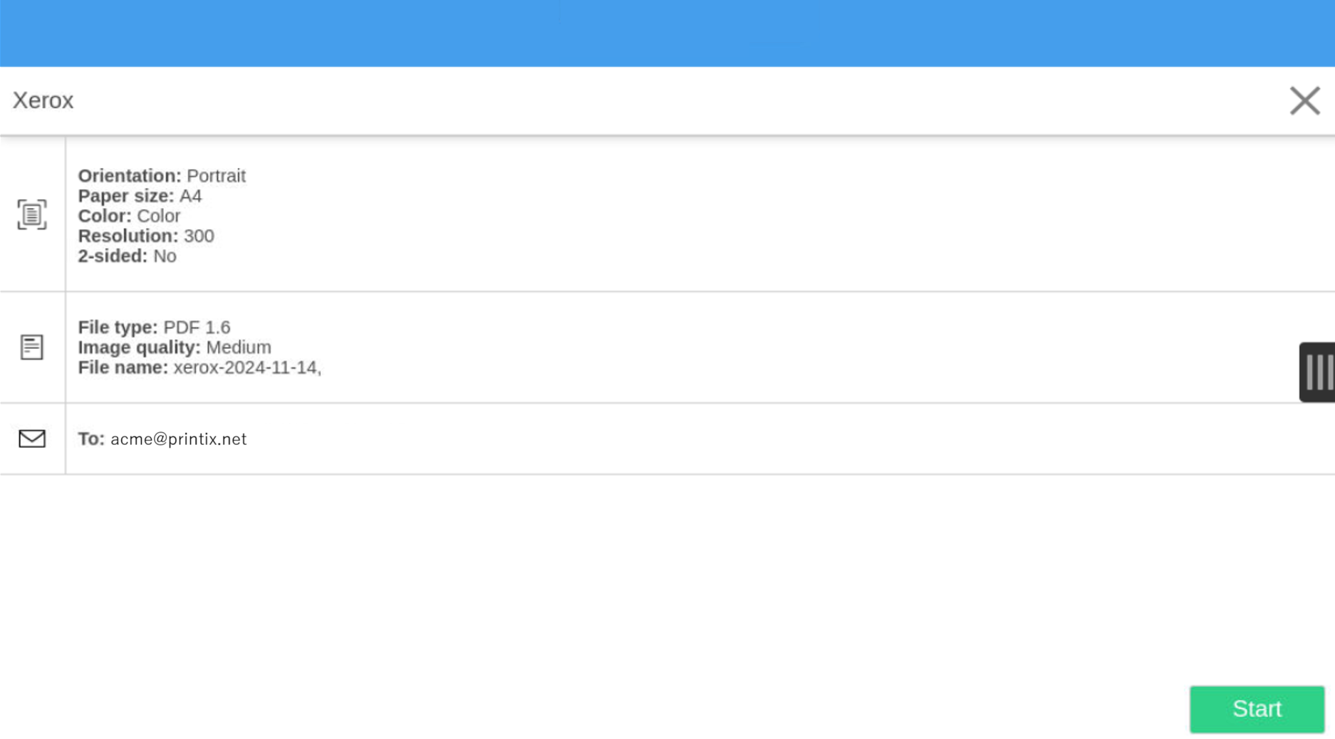 - Potvrďte podrobnosti pracovního postupu a vložte dokument do tiskárny: