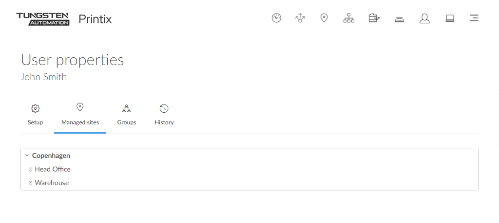Selecting a folder or a site opens the Sites page with the selected folder or site displayed. Folders and sites that are directly managed by the site manager are displayed in bold.