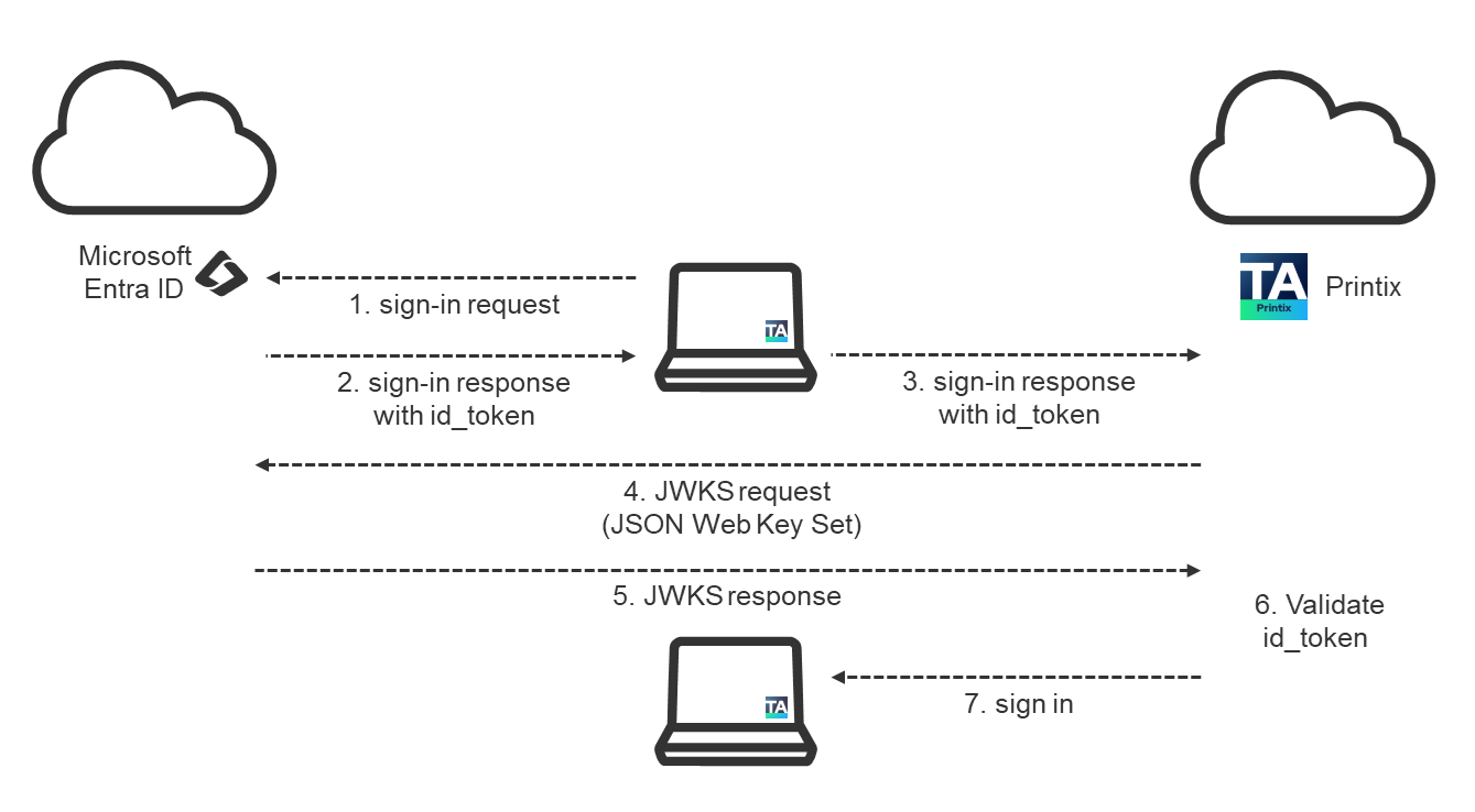 All Printix communication inside and outside the network is secured with encryption and the use of HTTPS. TLS 1.2 is used.