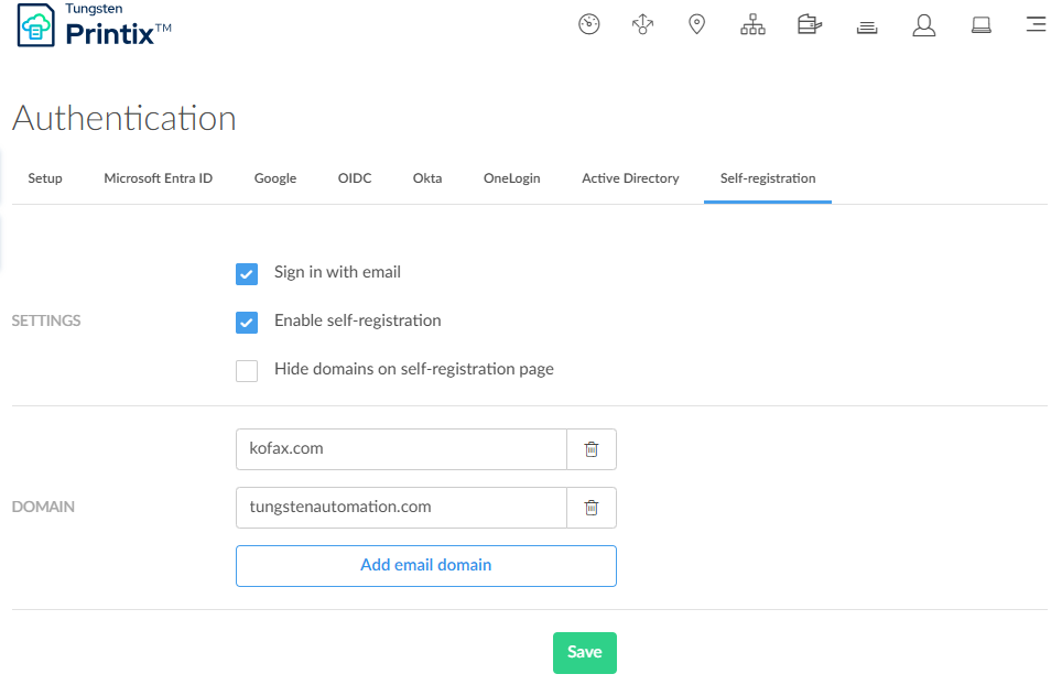 Select this to enter additional email domains. The first approved email domain is by default based on the work email that was used to sign up for this product. For example, the work email domain: acme.com.