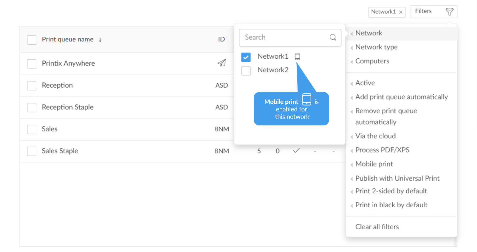When you delete a print queue, the corresponding Printix print queues on users' computers will also be deleted by the Printix Client.