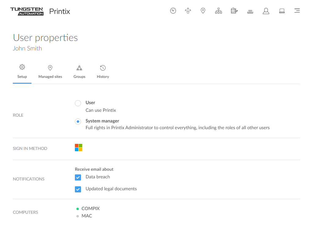 Full rights in Printix Administrator to control everything, including the roles of users.