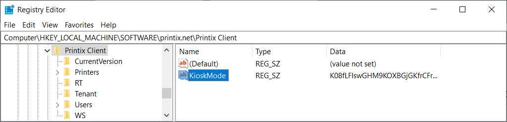 - Browse to HKEY_LOCAL_MACHINE\SOFTWARE\printix.net\Printix Client\.