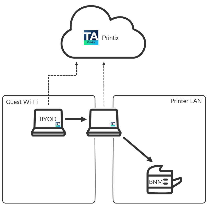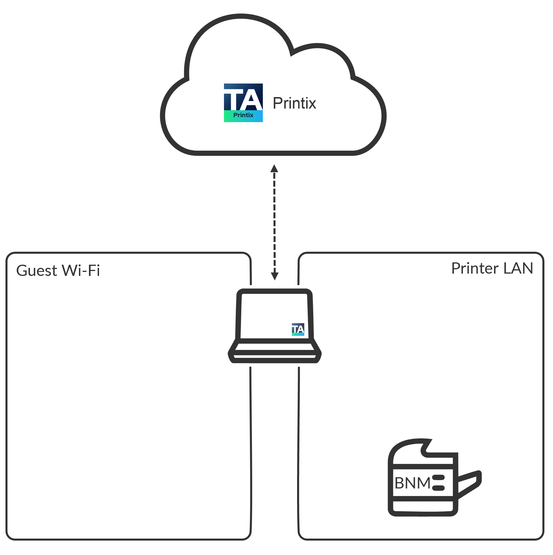 1. Install the Printix Client on a computer that is simultaneously on the Guest Wi-Fi network and the Printer LAN network.