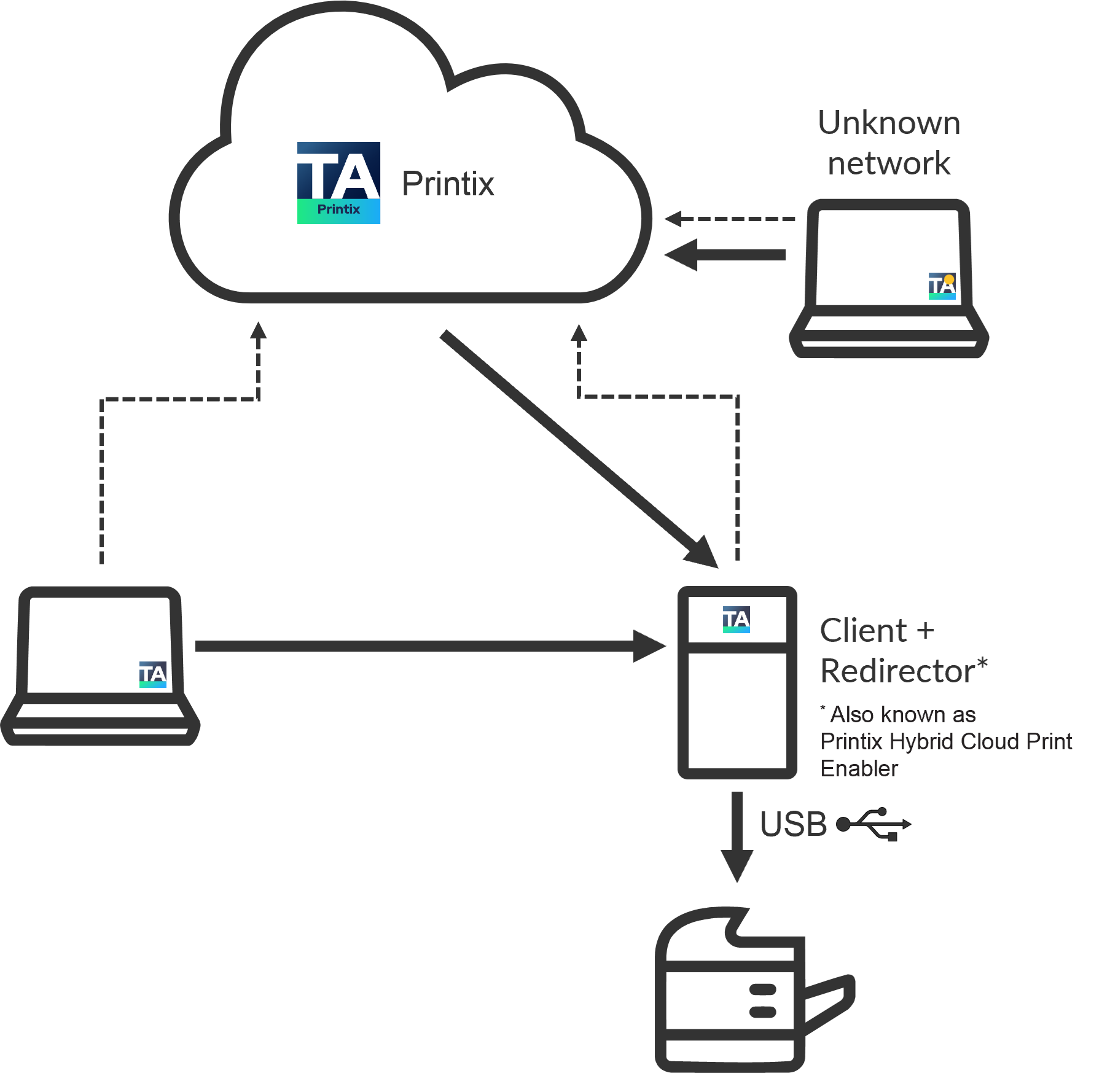 Use Printix Redirector (Printix Hybrid Cloud Print Enabler) to enable printing to a locally attached USB printer.