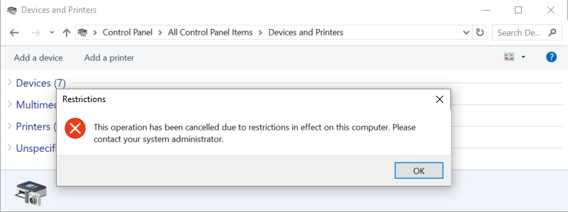 On Windows, you can make a group policy and deploy the PowerShell script to users' computers. Printix Client will still be able to add printers, because it is running under the local system account.