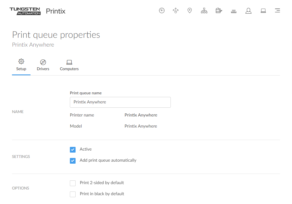 - Optionally, clear Active to allow administrators (you) to test printing before allowing users to add the print queue.