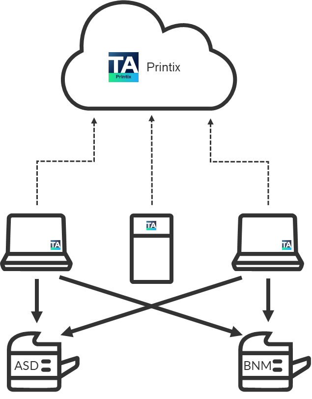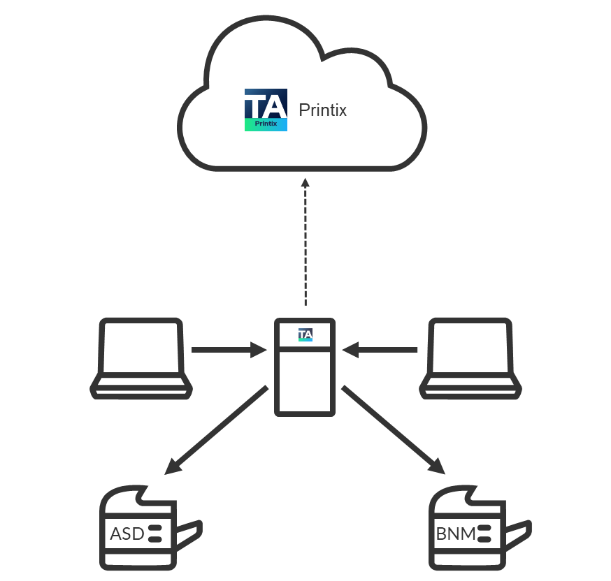 When you download the Printix Client software and install it on the print server, we make a copy of the current print environment details in the Printix Cloud. We do not change or delete anything on the print server.