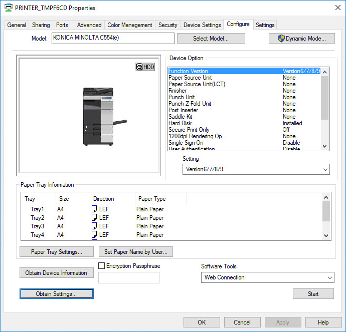 Print driver name: KONICA MINOLTA Universal PCL