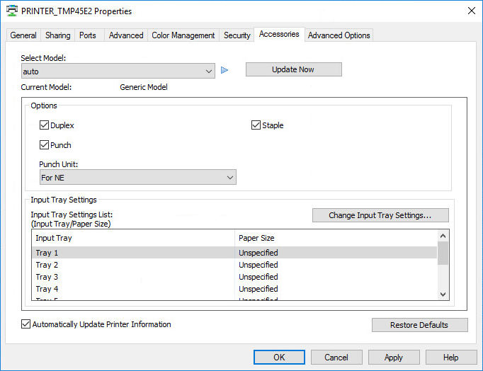 In Printix Administrator, you can add a new print driver configuration. The temporary printer's Printer properties dialog box will open automatically. Proceed to make the configuration: