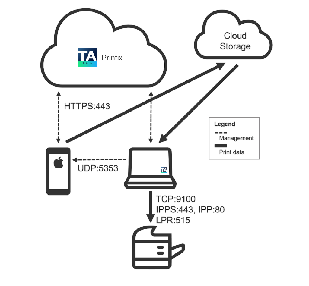 The URL https://airprint.printix.net via TCP port 443 must be unblocked.