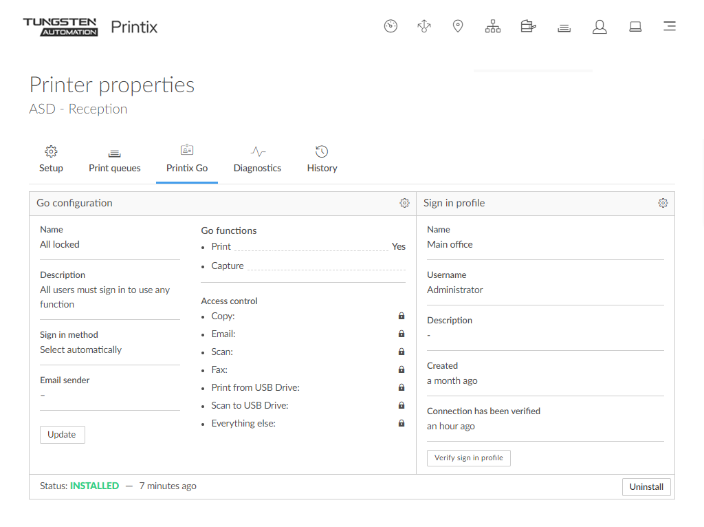 On Ricoh, a computer with Printix Client for Windows must be online on the printer's network during the uninstallation of Printix Go Ricoh.