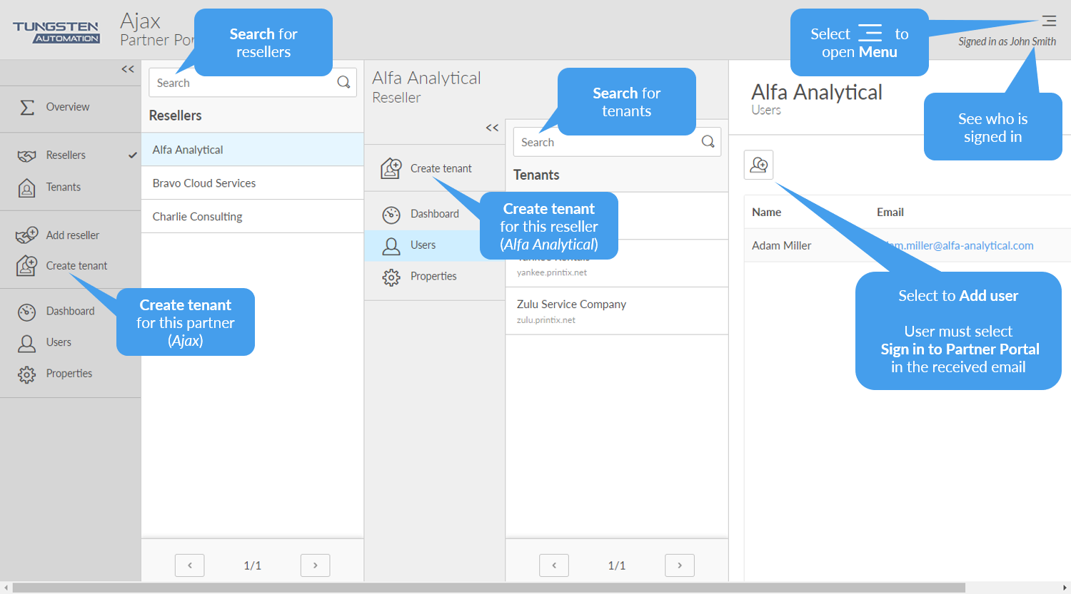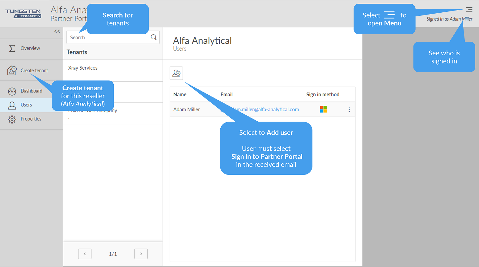 Select Users to manage who in your organization has access to the Printix Partner Portal.