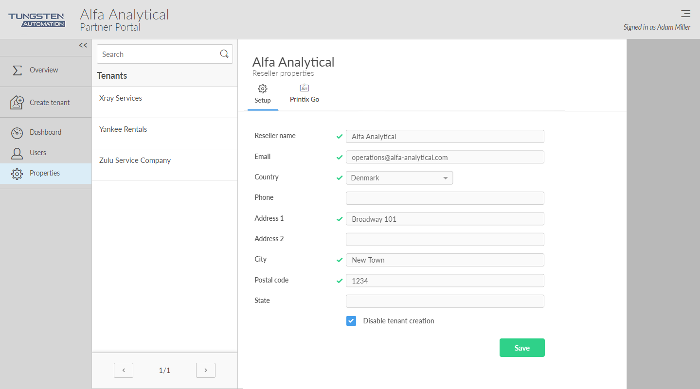 Select this if you do not want the reseller to be able to create tenants. This is only available if you are signed in as partner.