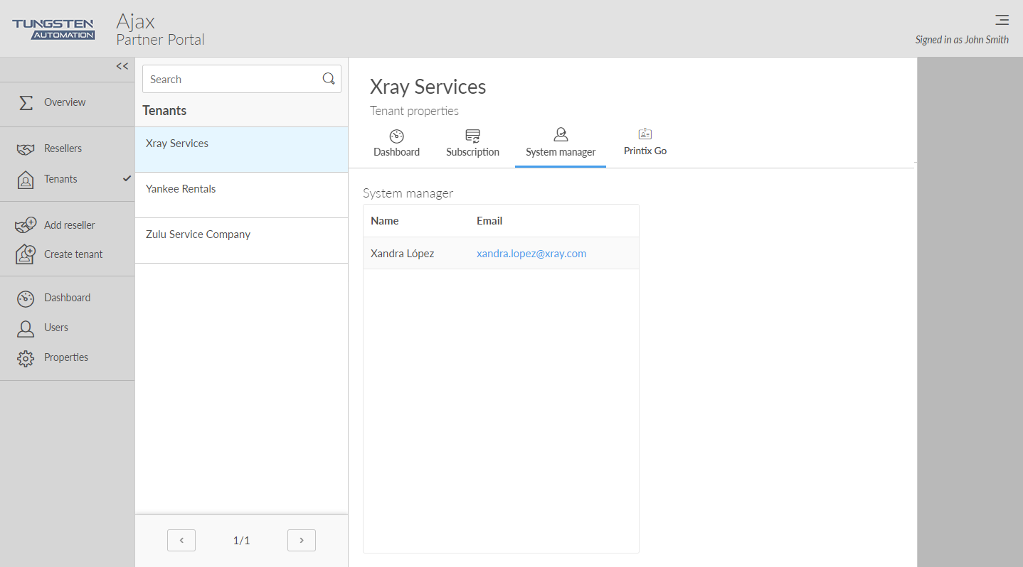 System manager On the System manager tab, you can see a list of users with the System manager role. The System manager table has the following columns: Name Name of the user. Email Email of the user.