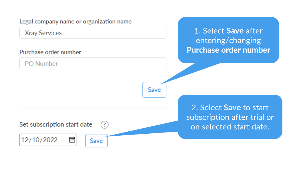 Change of subscription (Business or Education, Monthly or Annual) is done by the Tungsten Automation order and fulfillment team according to the content of the purchase order referenced through the Purchase order number.