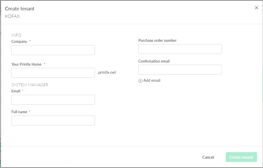 - Select Create tenant to create the Printix Home for the new tenant.