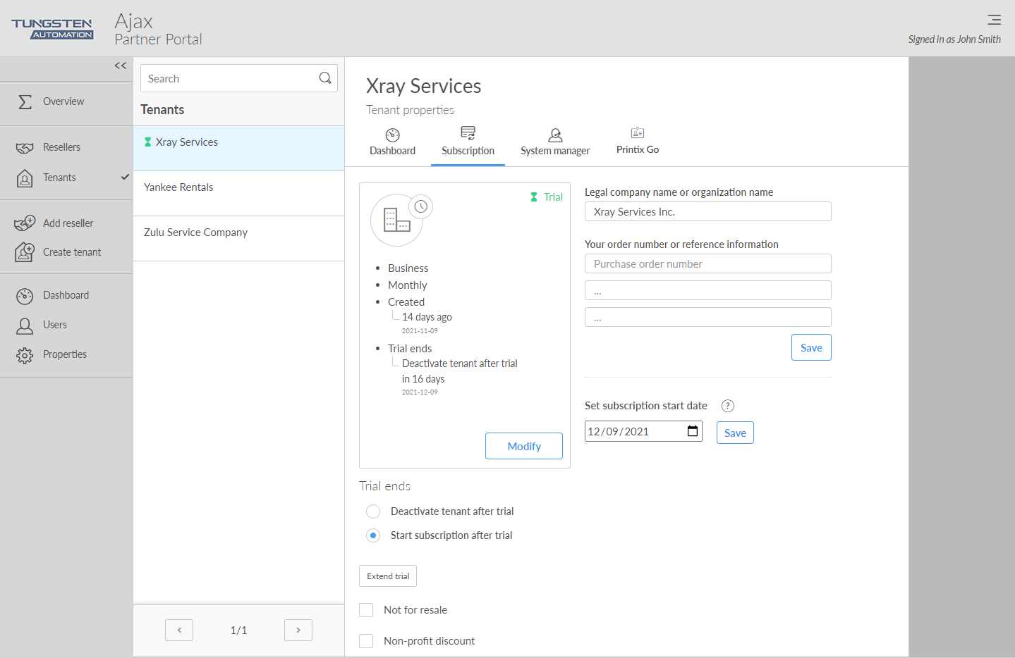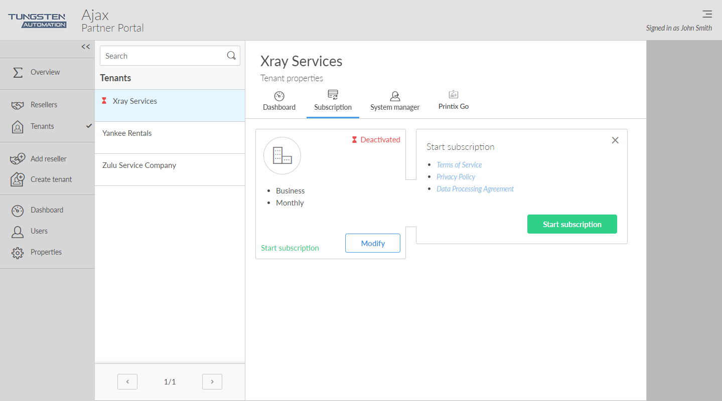 - Optionally, select Modify to change the plan and/or set the subscription start date.