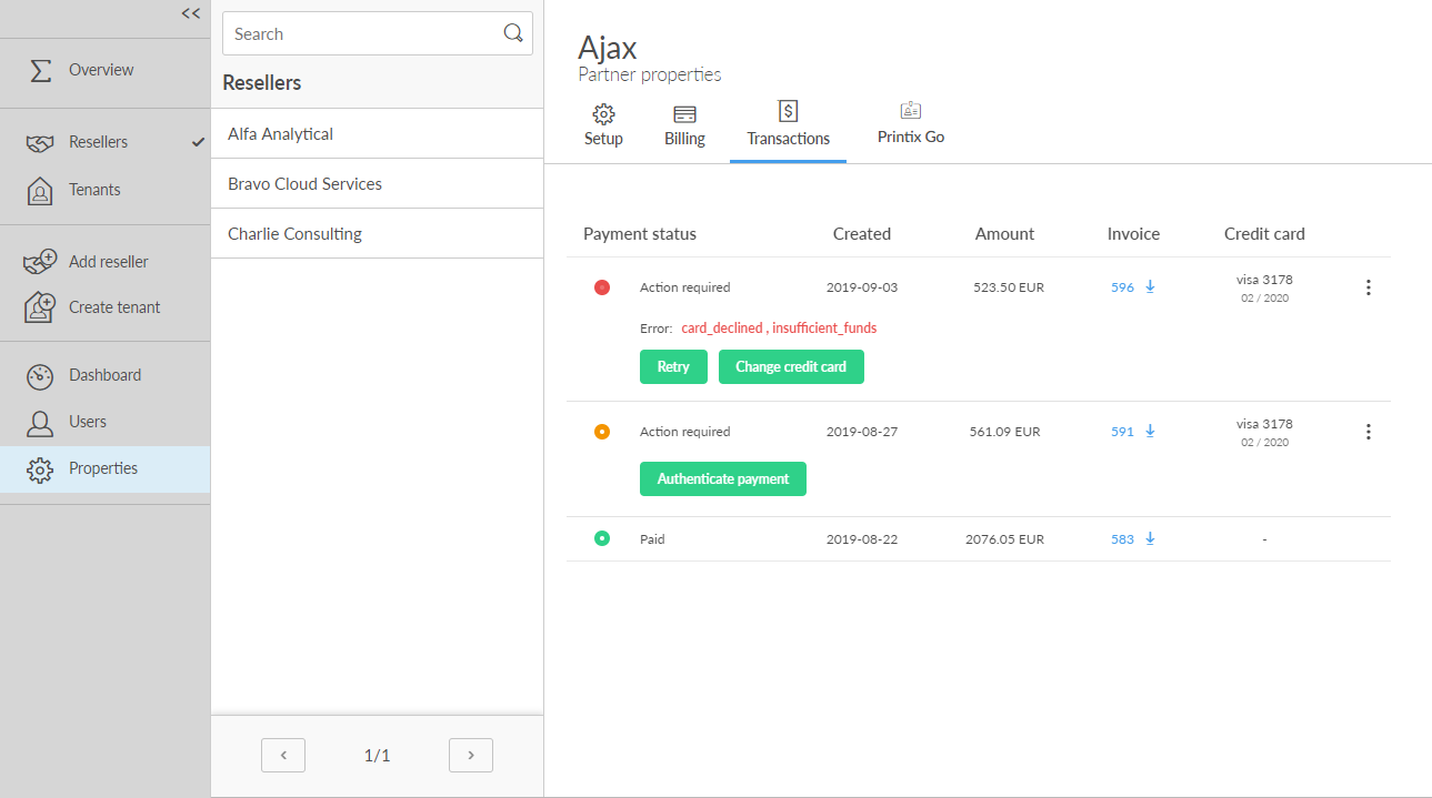 Select Authenticate payment to approve payment with the authentication method supported by your bank. If you have any questions or issues with one of these popups, it's best to contact your bank directly, because Printix does not control the form. If you have additional questions, contact finance.printix@tungstenautomation.com.