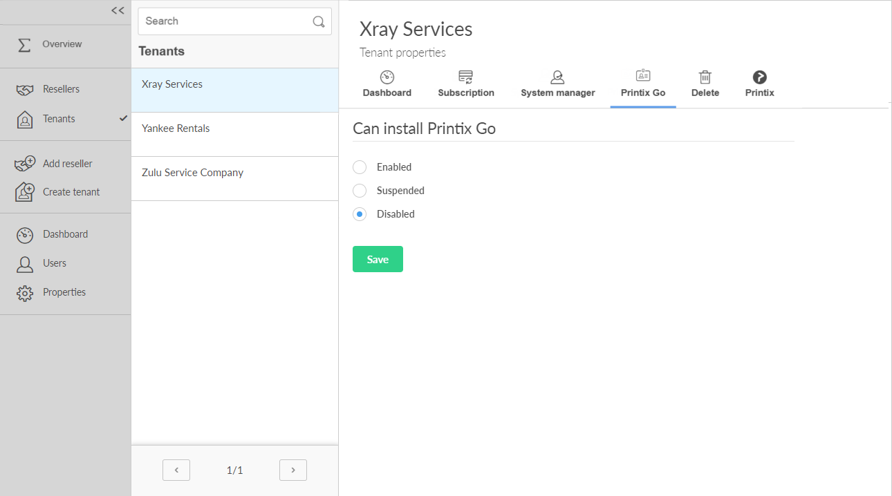 Select this to suspend further installations of Printix Go on printers, and only allow uninstallation on printers. After Printix Go has been uninstalled from printers, you can select Disabled.
