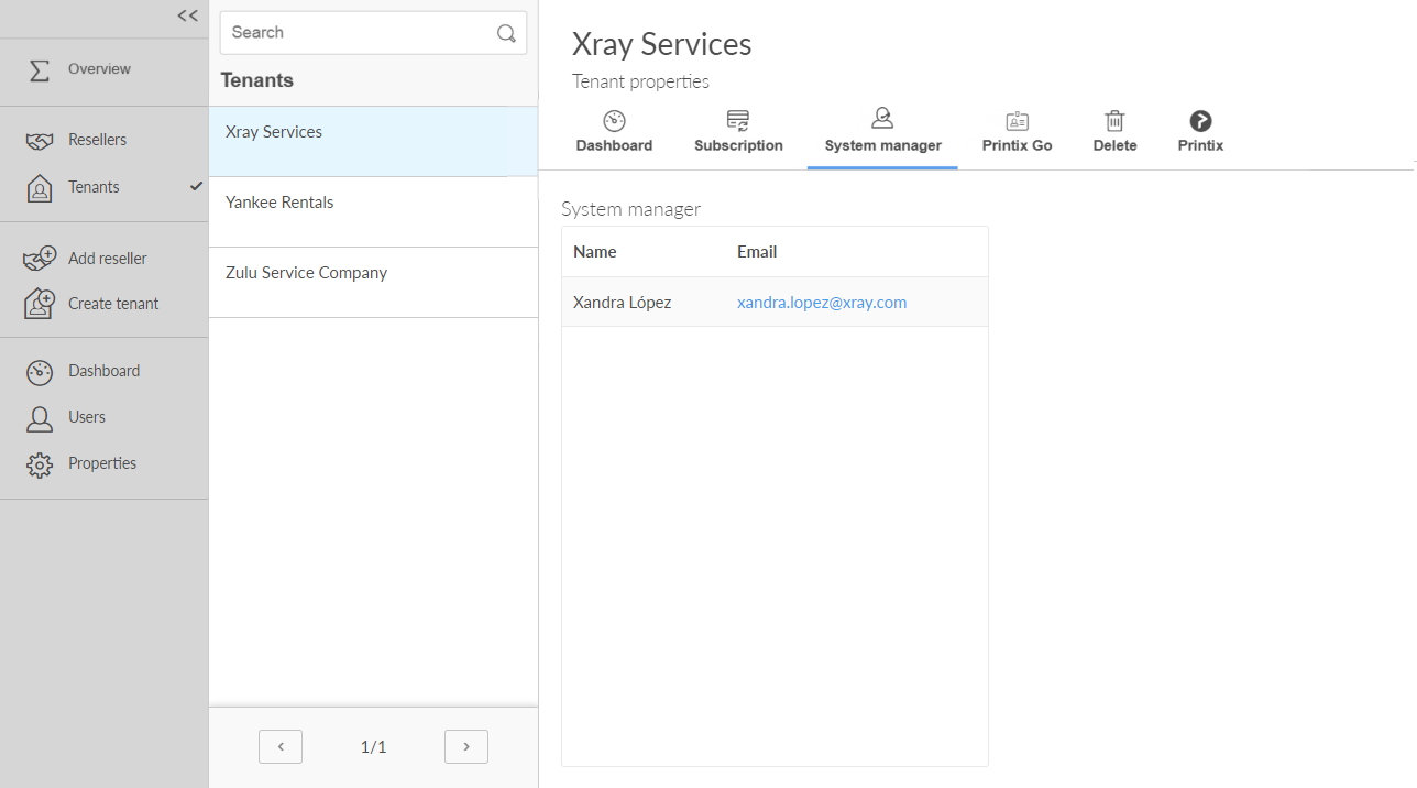System manager On the System manager tab, you can see a list of users with the System manager role. The System manager table has the following columns: Name Name of the user. Email Email of the user.