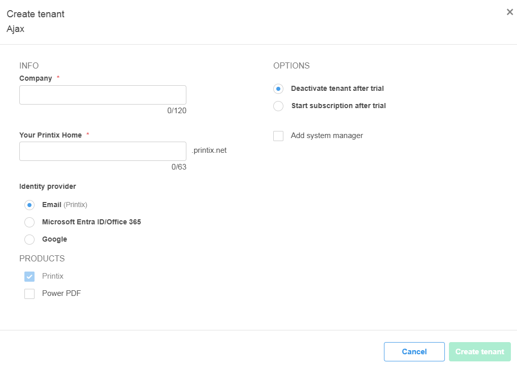 Open Printix Administrator for the new tenant to proceed with the configuration as described in the Printix Implementation Help.