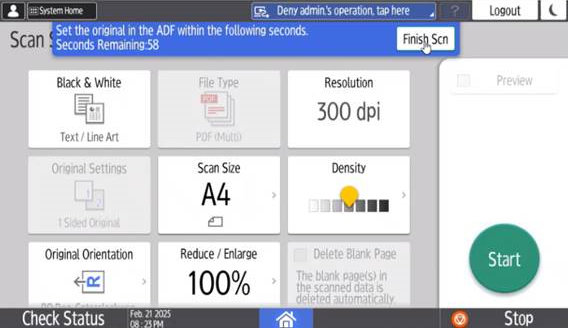 Selectați Finalizare scanare pentru trimiterea paginilor scanate către destinația selectată.