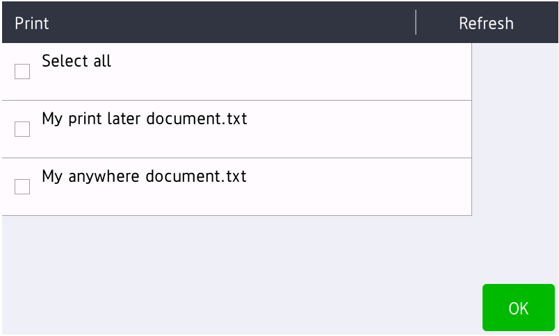 - Ak chcete uvoľniť iba konkrétne dokumenty, vyberte možnosť Vyberte, čo sa bude tlačiť, alebo ak chcete uvoľniť všetky dokumenty, vyberte možnosť Tlačiť všetko.