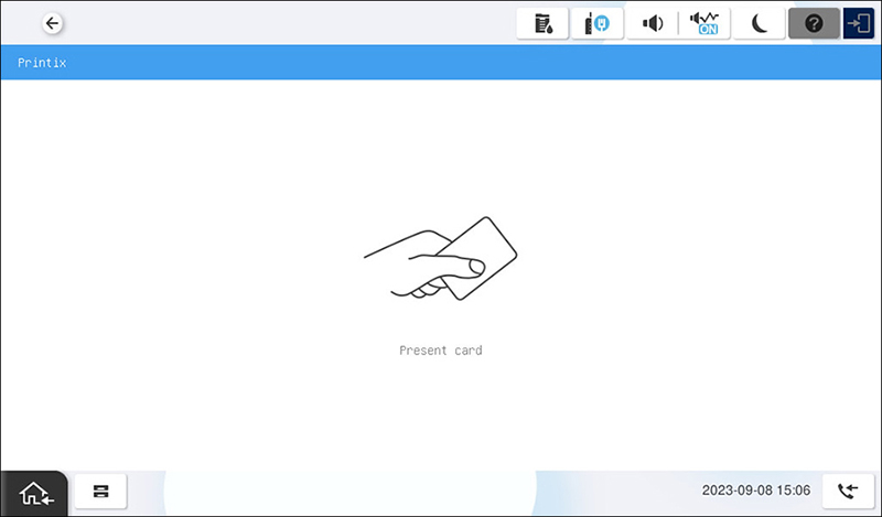 - Priložte kartu k čítačke kariet na tlačiarni.