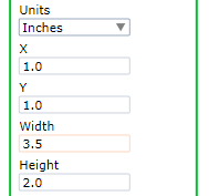 Values are calculated relative to the upper left corner of the page. If a field contains a negative value, it is calculated relative to the appropriate dimension of the page. If Width or Height is set to 0, the page dimension is used instead.