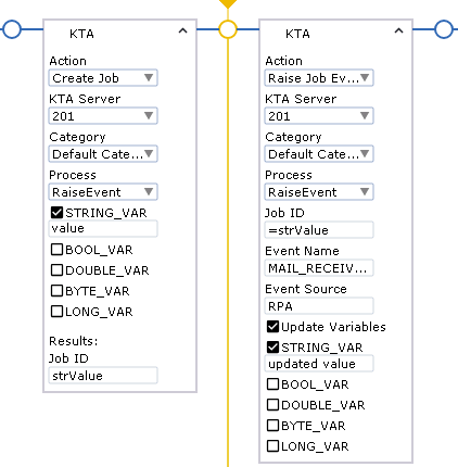 This step connects to a Kofax TotalAgility (KTA) server and can start a new job, get a job status, create a new document, get a job variable, or raise a job event.