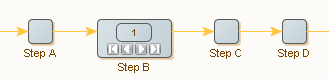 En supposant qu'il n'existe pas d'erreurs ou d'étapes de test, que l'étape B produise trois états de robot et que toutes les autres étapes produisent exactement un état de robot, les étapes sont exécutées dans l'ordre suivant : « A, B[1], C, D, B[2], C, D, B[3], C, D », où B[N ] fait référence à la Nième itération de l'activité de boucle contenue dans l'étape B. Notez que les états de robot de sortie de l'étape B sont des états de robot différents : chaque itération produit un nouvel état de robot. Ainsi, l'étape C reçoit un nouvel état de robot d'entrée chaque fois qu'elle est exécutée.