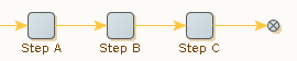 ) envoie une notification à l'Étape de tentative (qui n'est pas nommée dans cet exemple). Cela entraîne l'exécution de la deuxième branche vide, puis la branche entière qui commence à l'Étape de tentative est exécutée. Ainsi, les étapes B et C ne sont pas exécutées si l'étape A échoue.Cette situation se produit aussi souvent qu'une option spécifique de traitement des erreurs, Ignorer les étapes suivantes, est introduite comme raccourci. Cela permet de simplifier l'exemple comme suit.