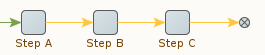 L'icône indique que l'étape B est configurée pour traiter les erreurs par « Essayer l'alternative suivante ».