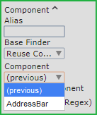 前のファインダーの参照は、ファインダーを再利用するうえで最も有用かつ一般的な方法です。この参照を行ったものは、ファインダーの上から 2 番目のフィールドの再利用ドロップダウン リストに [(直前の)] とマークされます。この場合、現在のファインダーでは、直前に使用されたファインダーのセレクターが再利用されています。