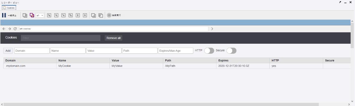 CookieStore から Cookie を監視、追加、または削除するには、Desktop Automation 組み込みブラウザを使用します。