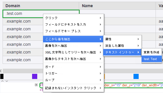 次のようなコンテキスト メニューを使用して、Cookie 属性を右クリックしてその値を抽出します。