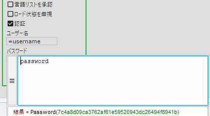 に username および password 変数を追加し、その値を指定します。次に、これらの変数を入力値として追加して、ロボット に渡します。ロボット内で、これらの変数を [入力値] フィールドに追加してバインドします。その後、[認証] チェック ボックスをオンにします。[ユーザー名] フィールドと [パスワード] フィールドに、それぞれ username 変数と password 変数を追加します。