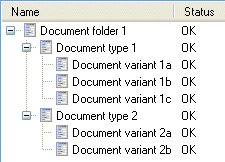 – Det översta dokumentet fungerar som "mapp", eller kategori, för specifikationerna i nivån nedanför. Det har oftast inga klassificerare och/eller få fält. Denna typ av specifikationer utesluts oftast vid klassificeringen genom att välja i dialogrutan : Inställningar för . Om du grupperar dokument i mappar kan du lättare lägga till nya dokumenttyper utan att behöva göra några ändringar i buntspecifikationen. I mer komplexa lösningar kan du ha flera nivåer av mappar/kategorier.