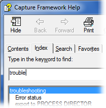 Many times, you can easily correct problems and errors. Instructions and information are provided in this help file. For a list of topics that can help during troubleshooting, click the tab. Then type troubleshooting in the box: