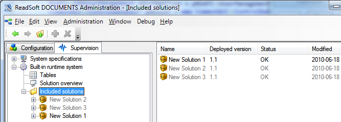 If multiple runtime systems are used, only those solutions that are included in the separate runtime systems are listed under them. |