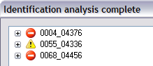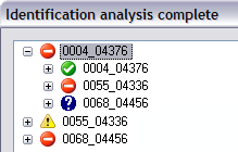 For positive examples (when the root node and the subnode have the same name), this icon means that all the examples in the folder were correctly identified. You still might want to expand the subnode to see if there are any adjustment fields not found on all examples. For negative examples (when the root and the subnode have different names), this icon means that no identification was successful. Because this is as it should be, no further information is provided. |