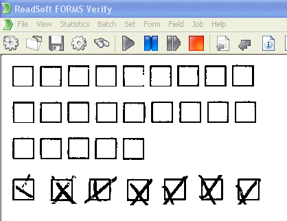Verify displays any forms containing mark fields that have Mass verify status, with filled-in fields highlighted in yellow. (Show me what it looks like.) |