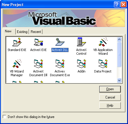 Create a new ActiveX DLL project using Microsoft Visual Basic 6.0.