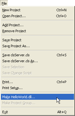 Rename the project to "HelloWorld" and rename the default class module to "clsServer". You will use these names later when you add the plug-in to Eilocal.ini.