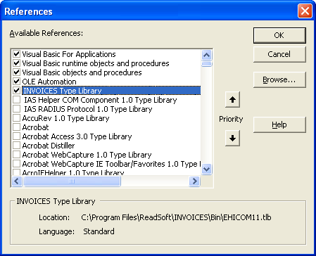 Add a reference to the INVOICES type library.
