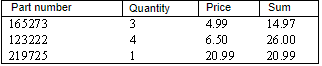 Consider the following example using a typical list of line items from a generic invoice: