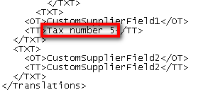 - The internal names, CustomSupplierField1 and CustomSupplierField2, are used in connection with the field value in the output.