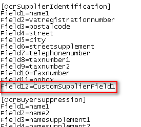 - Add the field names to the [OCRSupplierIdentification] section of the Eiglobal.ini file.