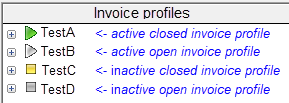 Consequently, only those invoice profiles that have a green arrow icon (that is, indicating that they are both Active and Closed) can be used in a job description to process invoices.